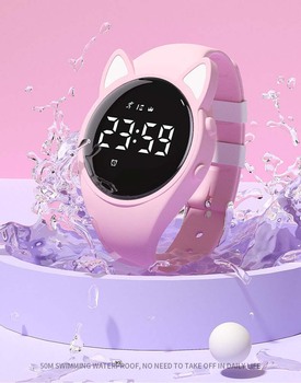 Reloj digital LED con pantalla grande de dibujos animados, reloj barato con dibujo de animal fresa color caramelo, 2023
